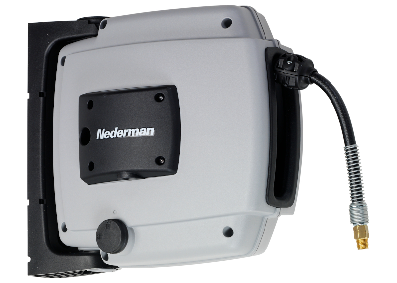 Der Federzug-Schlauchaufroller H20 für Wasser und Luft eignet sich für den industriellen Gebrauch, Handwerker und Do-it-yourself Werkstätten. Der Schlauchaufroller H20 ist aus sher robustem, schlagfestem Verbundwerkstoff gefertigt. Die einfach zu montierende Wandhalterung mit Schnapp-Verschluss zum Einhängen des Aurollers, erlaubt einen weiten Schwenkbereich des Aufrollers nach der Montage. Der Schlauchaufroller eignet sich ideal für den Anschluss von Druckluftwerkzeugen, Tacker und Druckluftpistolen. Die Auszugskraft der Feder des Aufrollers ist ab Werk optimal voreingestellt und stellt sicher, dass der Schlauch sich gleichmäßig in der Trommel aufwickelt. Die Feder ist aus Qualitätsstahl und in der Trommel geschützt montiert.