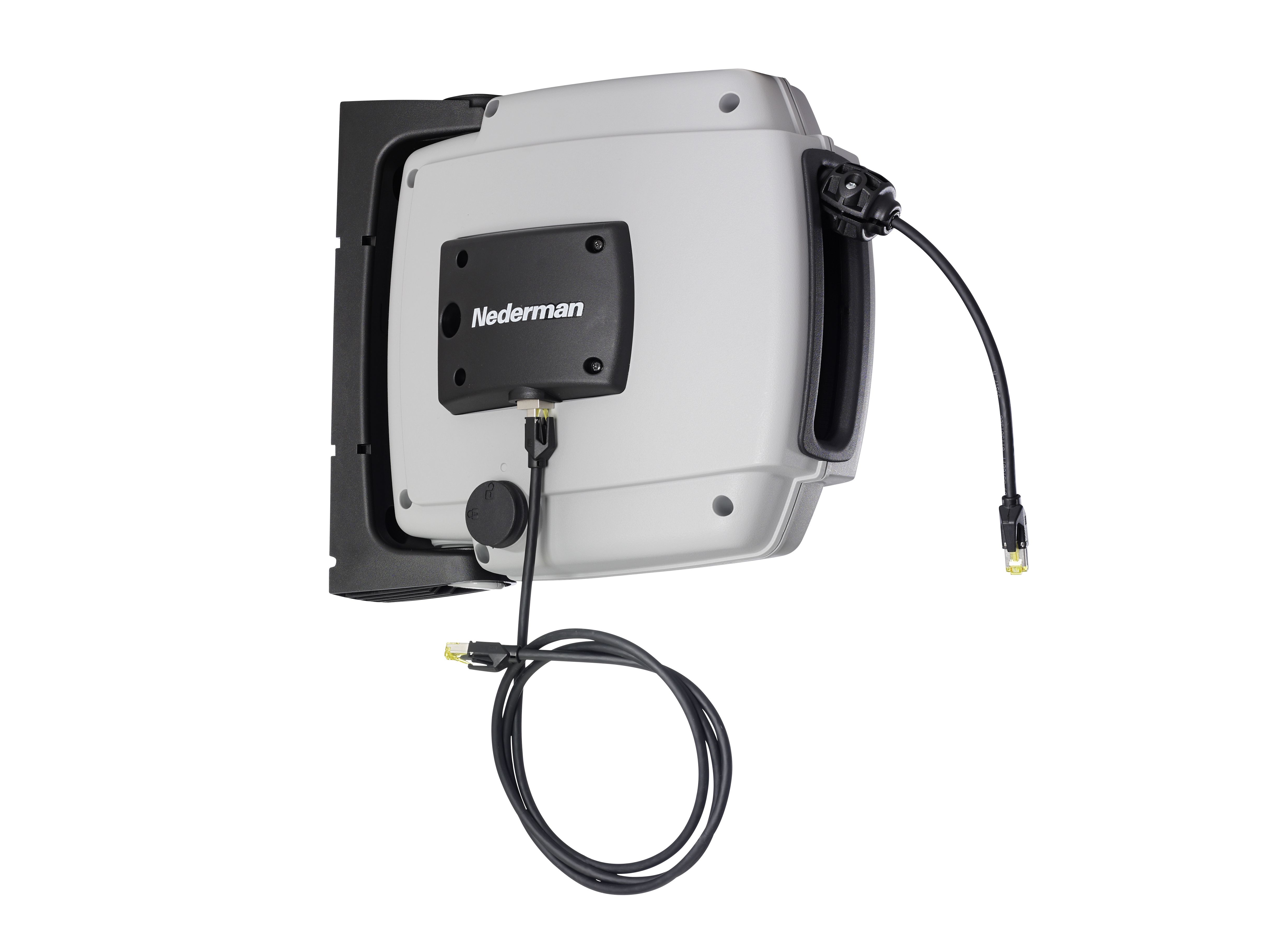 Der Datenkabelaufroller D20 ist mit einem Kat.7-Netzwerkkabel ausgestattet – der aktuellen Referenzklasse für Hochgeschwindigkeitsdatenübertragung.